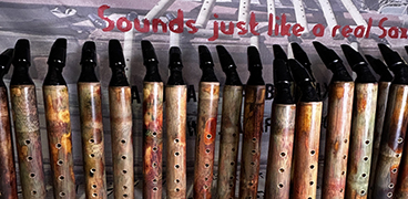 Handmade by Johnny. Wind instruments made to sound just like a Saxophone. As sold all over the globe personally by myself. From the coast of Maine to the Coast of Spain. Made from different varities of bamboo and the occasional exotic hardwood.